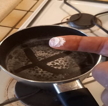 LA PREUVE DE L'EFFICACITE DU TARTREX COMME ST THOMAS DE VISU Mettez 2 verres d'eau dans une casserole propre, faites tout évaporer , Au fond il reste le précipité de calcaire . Refroidissez le cul de la casserole et passez votre doigt humide au fond , si vous tracez un sillon et enlevez le calcaire c'est que le TARTREX A FAIT SON JOB! IL NE PEUT PLUS S'ACCROCHER A RIEN ! CFQD
