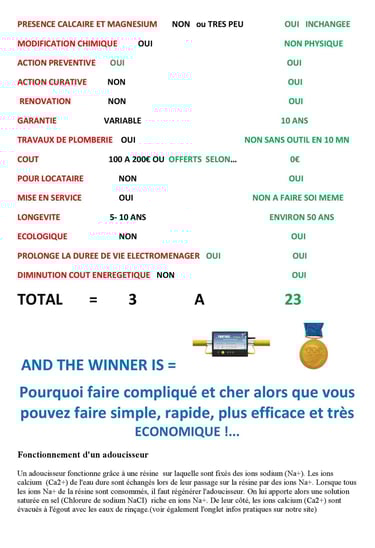 Vous protégez vos canalisations, appareils électroménagers et réduisez la consommation d'énergie et prolonger leur vie par 3 à 5 = encore des économies de réparation ou de remplacement qui évidemment tombent au plus mauvais moment à l'improviste !